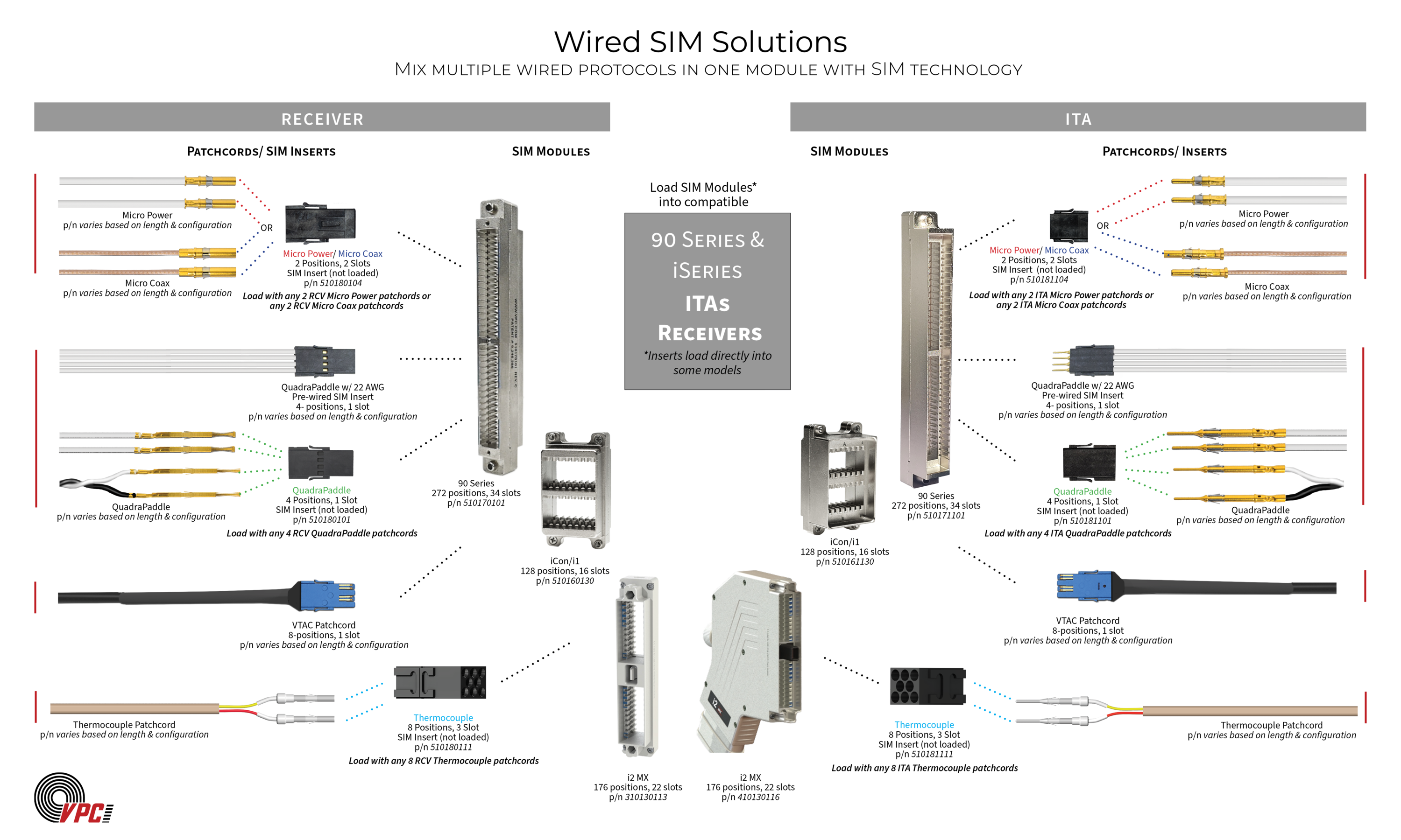 VPC's Snap-In-Modular (SIM) inserts offer multiple protocols, but many share the same footprint, making them compatible with VPC's 90 Series SIM module, iSeries SIM module, and i2 MX SIM model.